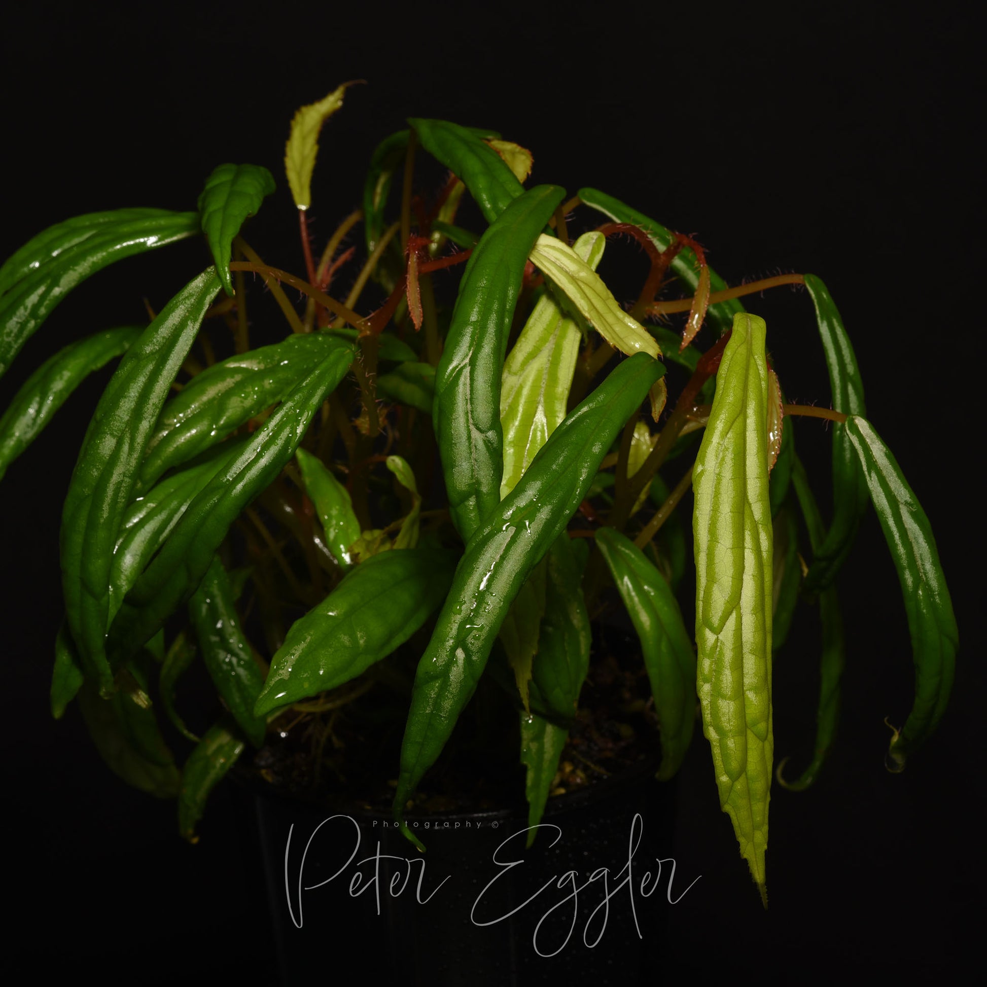 General Information and Cultivation3: A small-size, moisture-loving Begonia, easy to cultivate. Growth habit is weeping. Begonia montis-elephantis prefers humid terrarium conditions with a small amount of ventilation. Tankquility cultures this clone at about 23° Celsius, in a granular substrate based on akadama and scoria. Fertilize moderately.