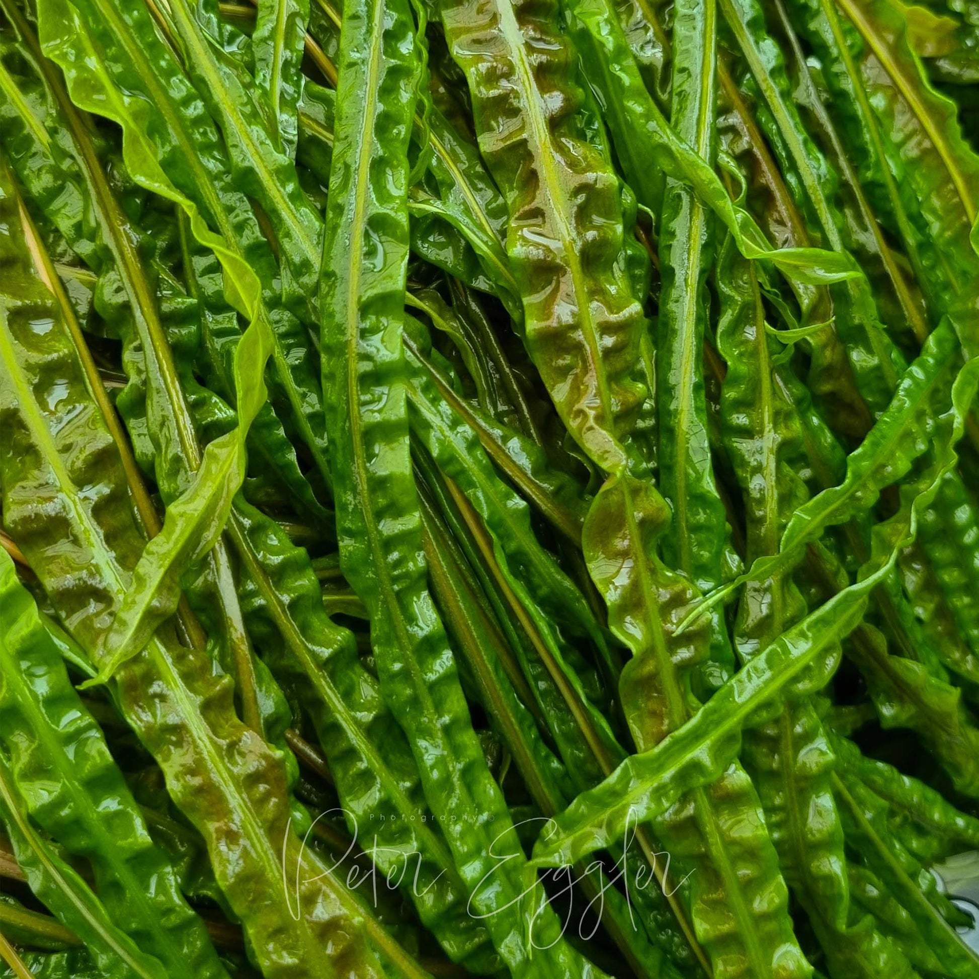 Image 1: Cryptocoryne retrospiralis grown submerse in a greenhouse pond. These plants are in their “green” phase. Sometimes this clone will take on a golden-brown colouration.